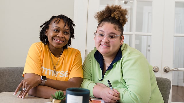 An Immerse Arkansas coach and teen at a weekly meeting